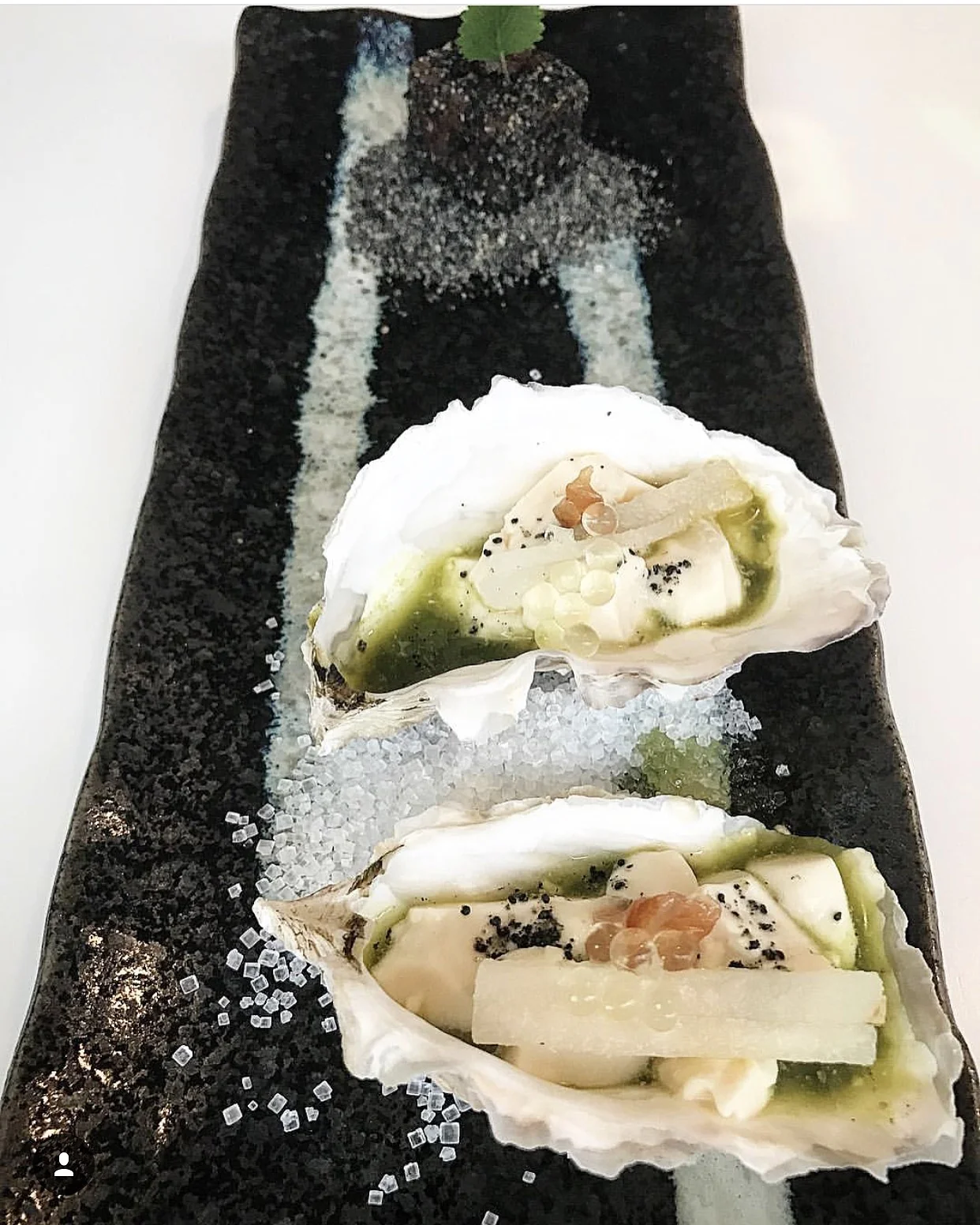 Lastly, the dessert. - Plum gelee, pear, matcha green tea, black sesame powder, and yuzu pearls. This was okay and my least favourite of all the dishes. Nonetheless, it's a creative approach to present the dessert in oyster shells.